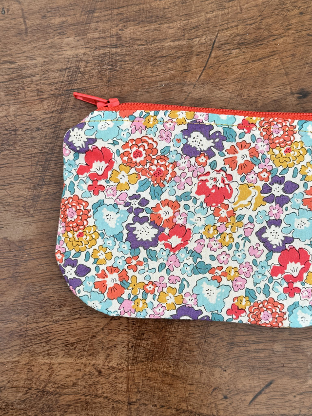 Petite pochette zippée pouvant servir de porte-monnaie, pour ranger des cartes format carte de crédit, vos écouteurs oreillettes, des petites barrettes, ...