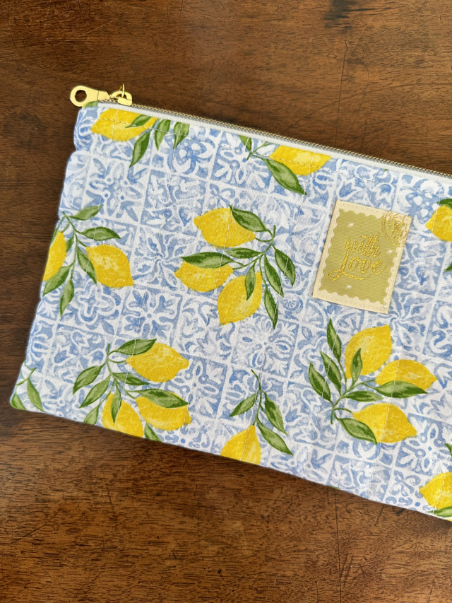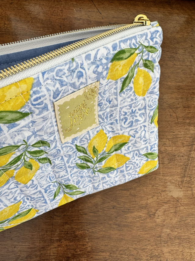 Grande pochette plate en coton matelassé (matelassage fait-main)