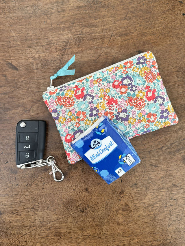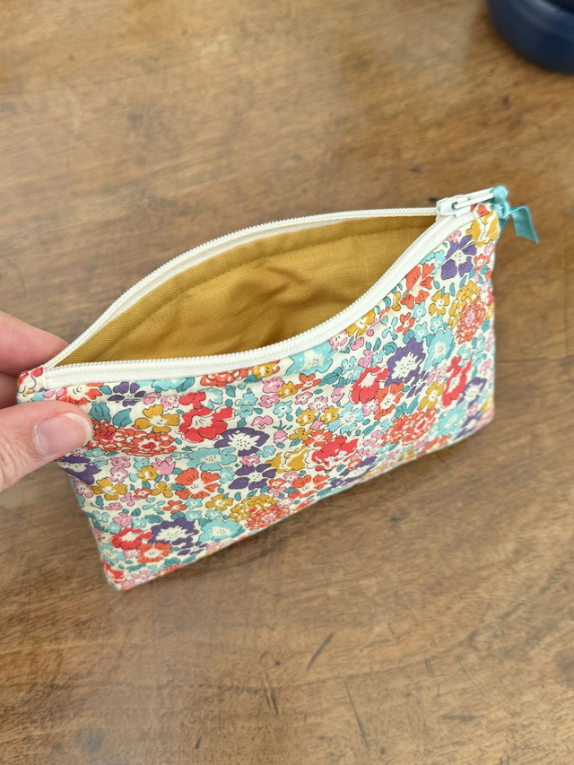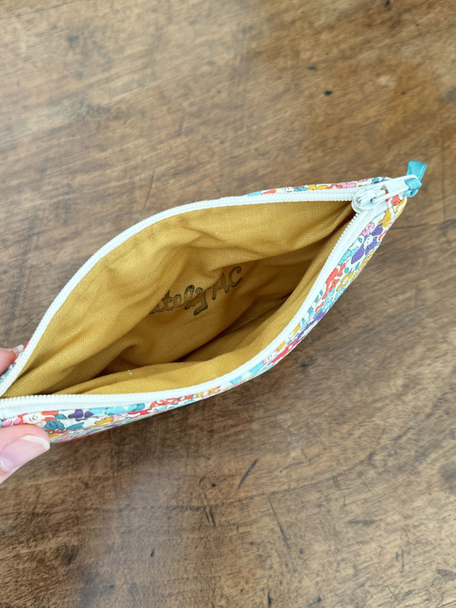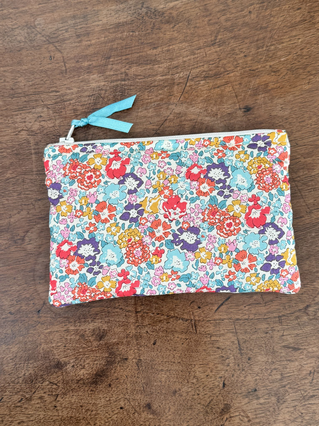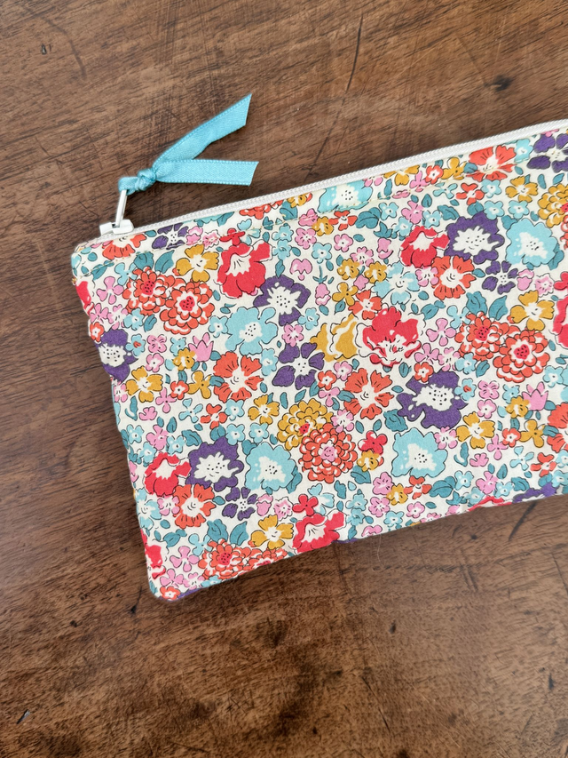 Fermeture éclair écrue. Petit ruban de satin couleur turquoise.