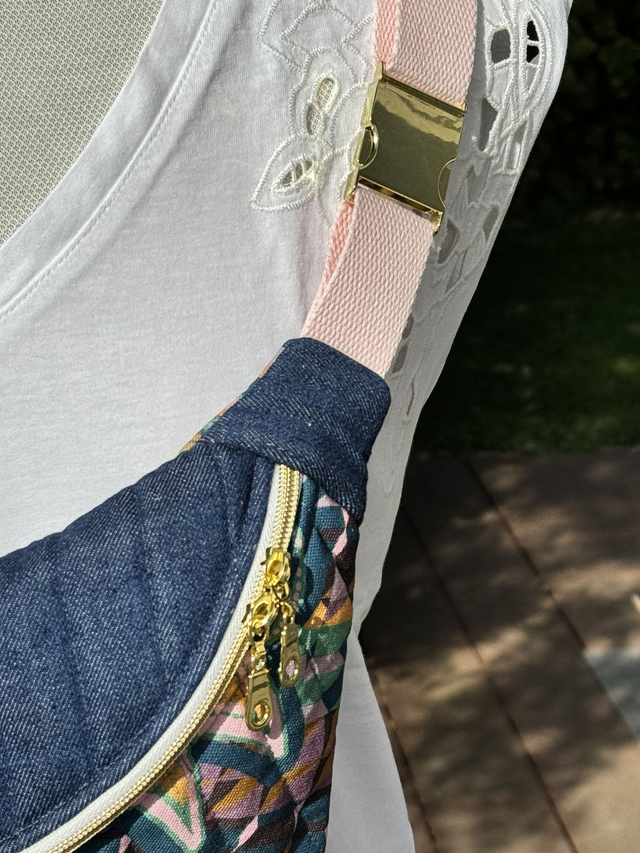 Bandoulière non amovible en coton rose.